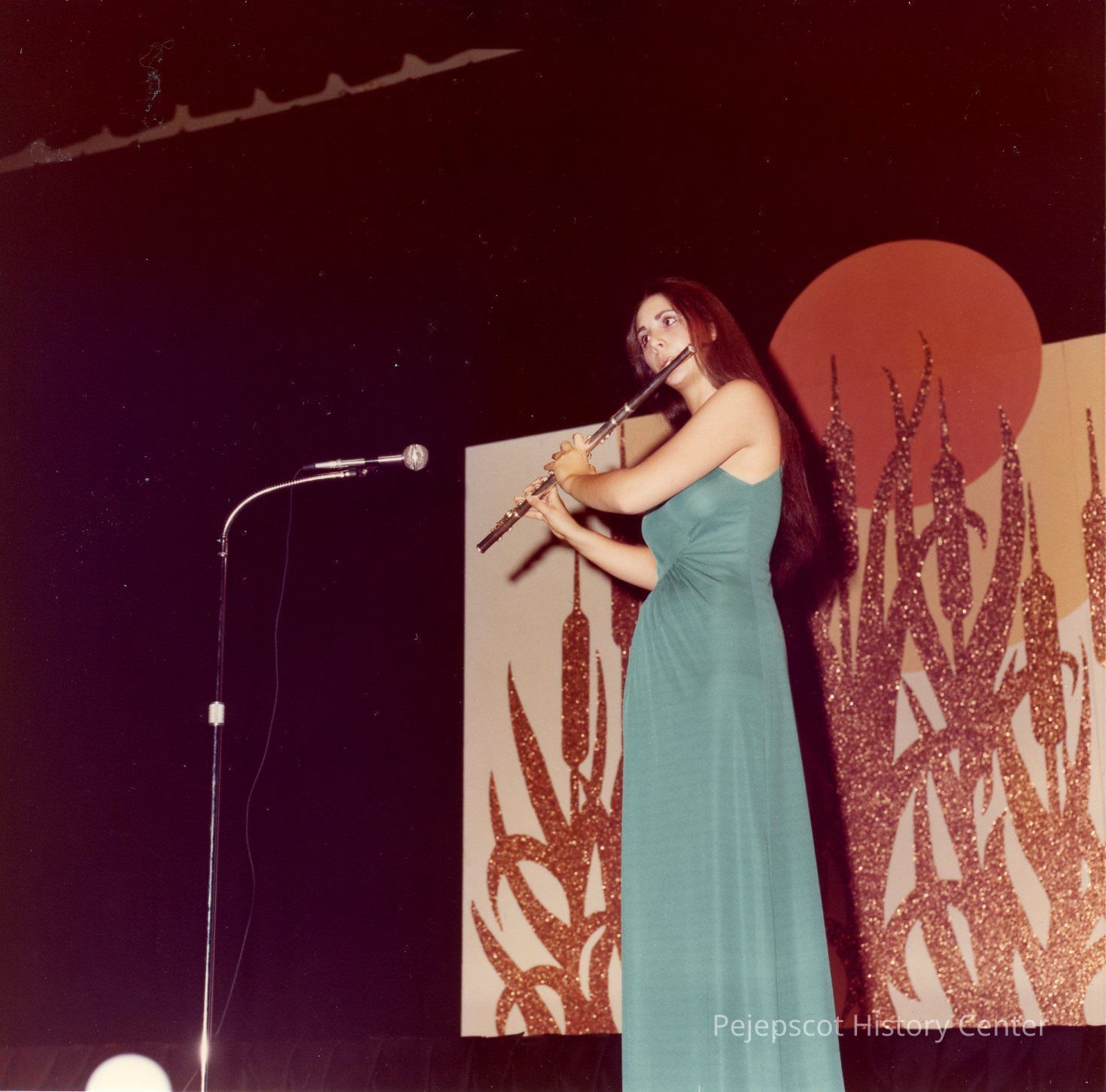 Brunswick Teen Queen Pageant, 1979. Kristie Kaknes, Contestant #8, will play "Suite for Flute and Jazz Piano" on the flute accompanied by Mr. Carroll Googins on the piano.Collection