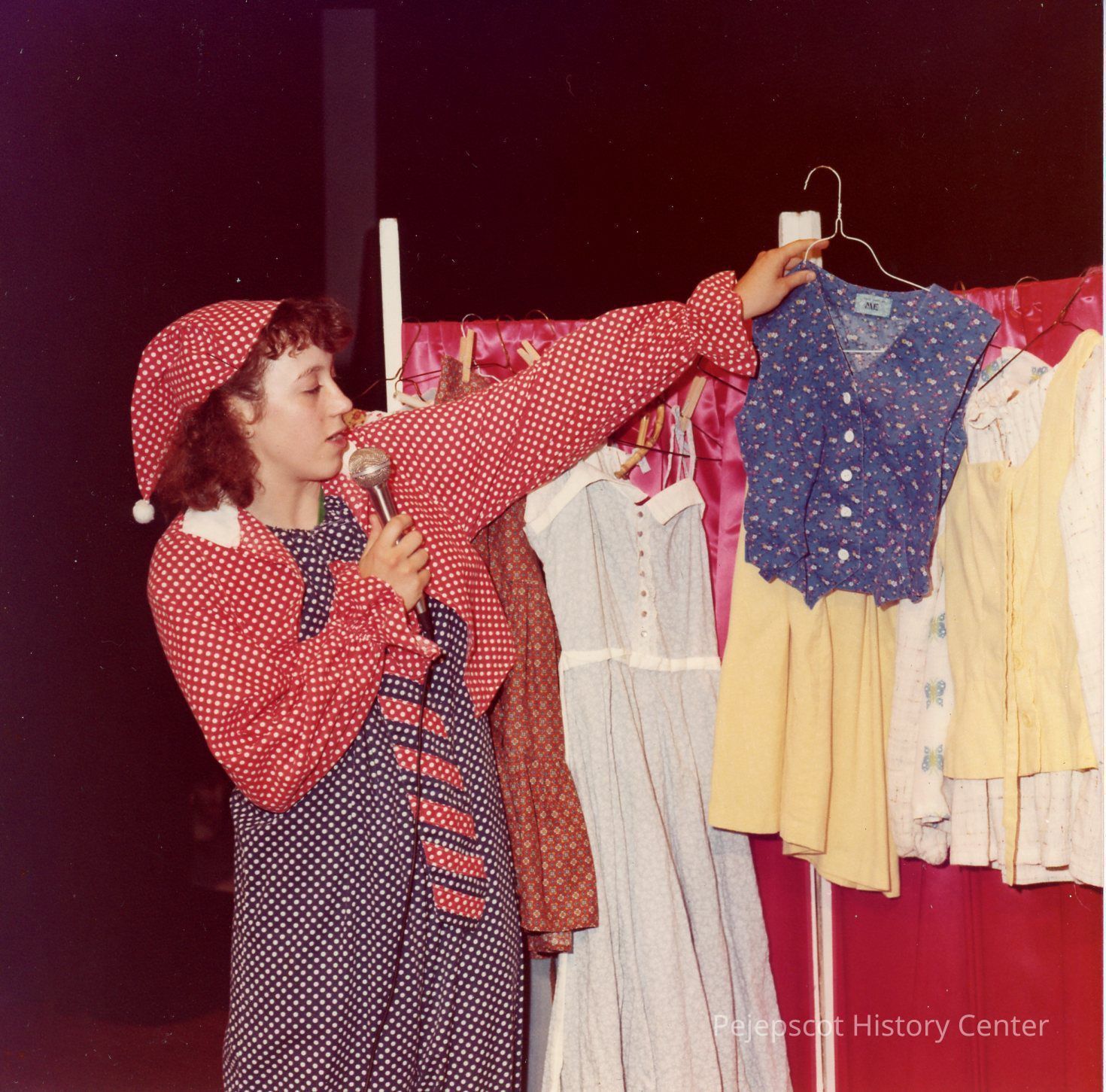 Brunswick Teen Queen Pageant, 1979. Contestant #4, Heidi Heintz describing what she could wear to different activities from the clothes she has made at dress rehearsal.