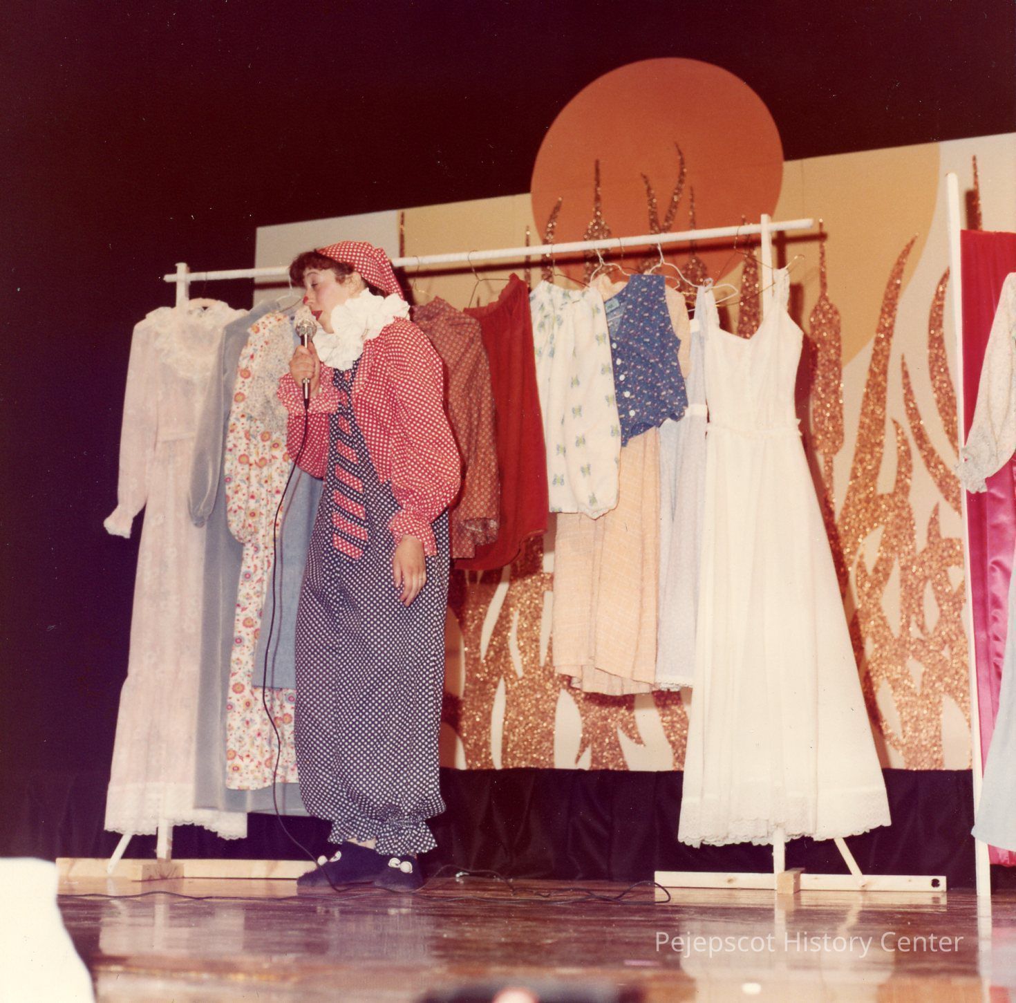 Brunswick Teen Queen Pageant, 1979. Heidi Heintz, Contestant #4, reciting a monologue and displaying clothing that she has made for her talent presentation.Collection