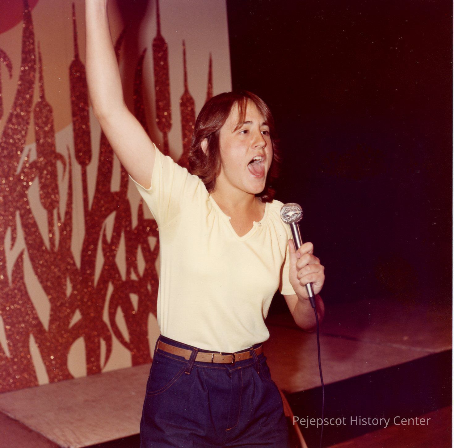 Brunswick Teen Queen Pageant, 1979. Contestant #3, Rita Thiboutot doing a recitation for her talent presentation at dress rehearsal.
