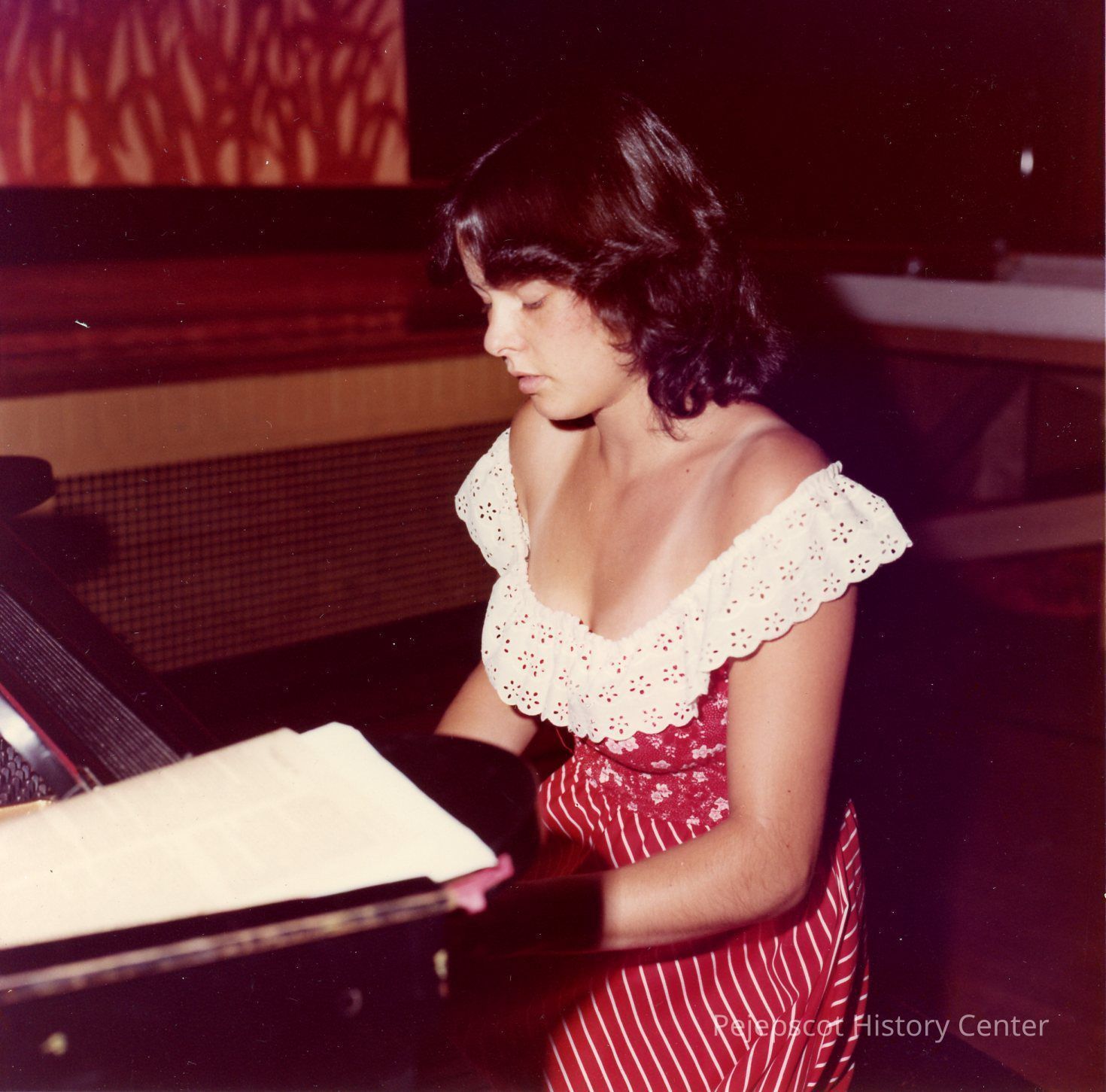 Brunswick Teen Queen Pageant, 1979. Contestant #2, Stephanie Davis playing the piano for her talent presentation at dress rehearsal.
