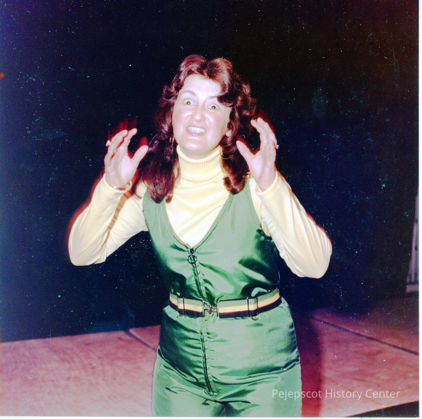 Brunswick Teen Queen Pageant, 1979. Brenda Alexander showing amazement when picture was taken while rehearsing the dance routine for the opening of the second half.