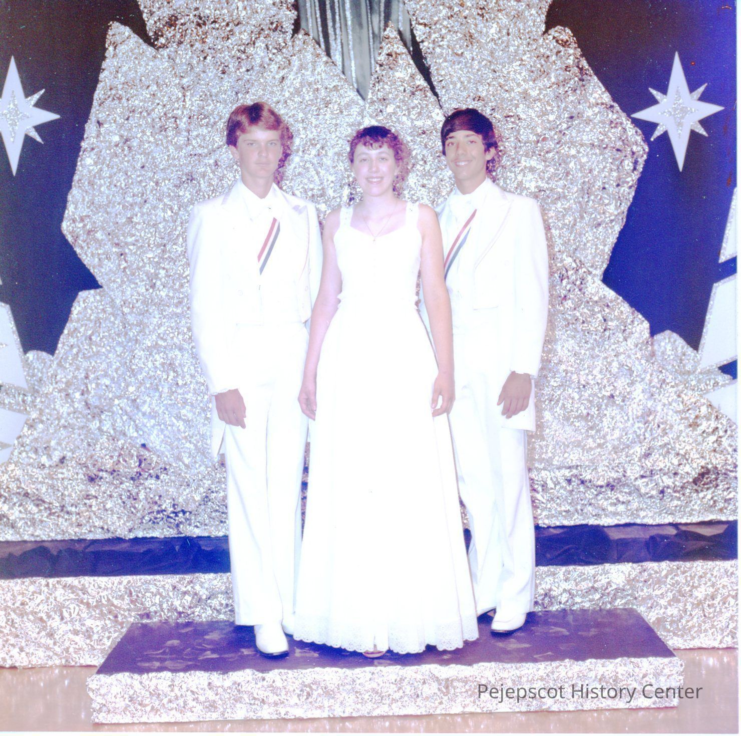 Brunswick Teen Queen Pageant, 1979. Heidi Heintz, Contestant #4, standing between two pageant escorts Bill Jacobs and Rick Lamarre.Collection