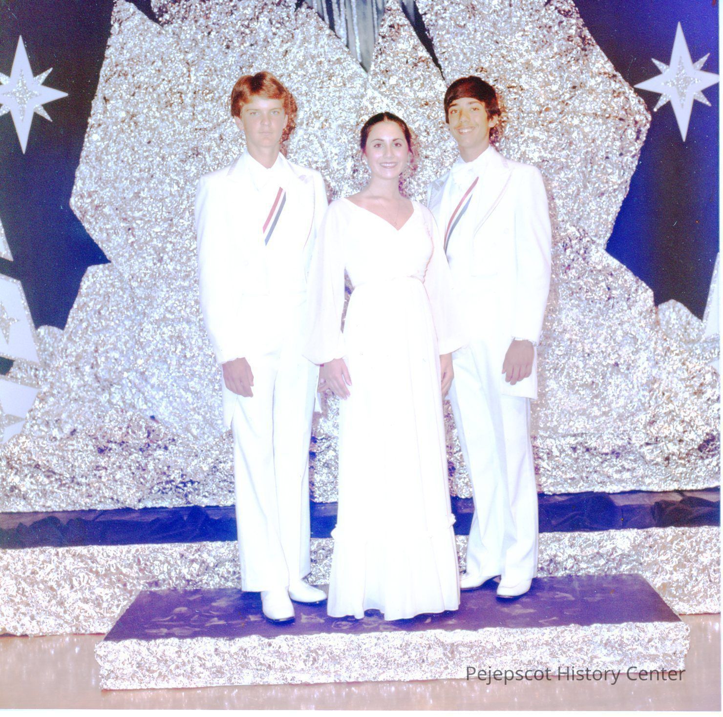 Brunswick Teen Queen Pageant, 1979. Kristie Kaknes, Contestant #8 standing with the two pageant escorts Bill Jacobs and Rick Lamarre.
