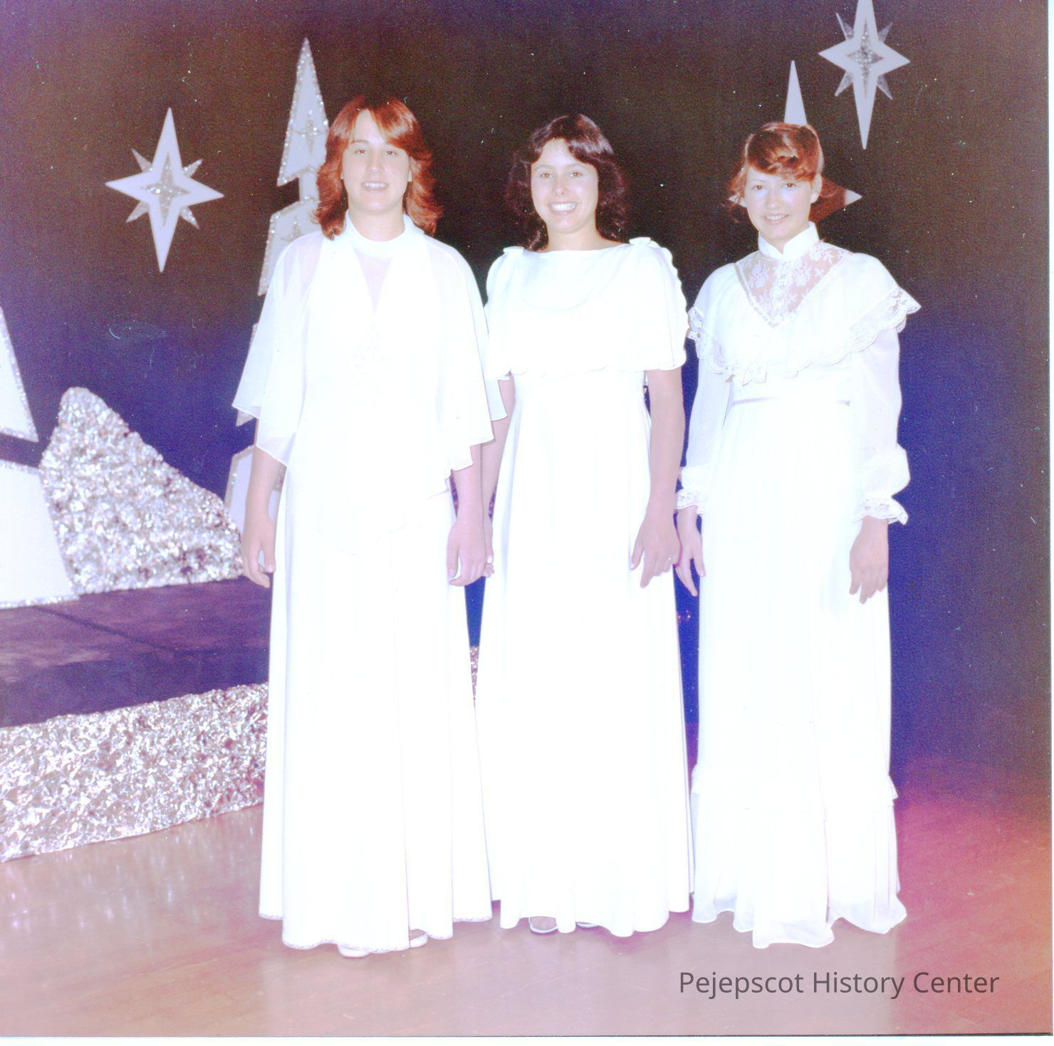 Brunswick Teen Queen Pageant, 1979. Contestants #3, 2 and 1. Rita, Stephanie and Ginger posting in their gowns.