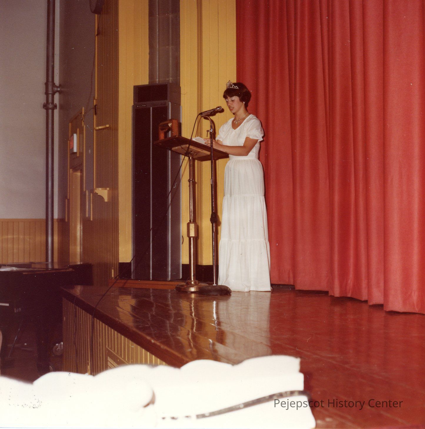 Brunswick Teen Queen Participants, 1978. Sharon Hinckley reading the special tribute to Elvis. Then the Music Express sang six of his most famous recording.