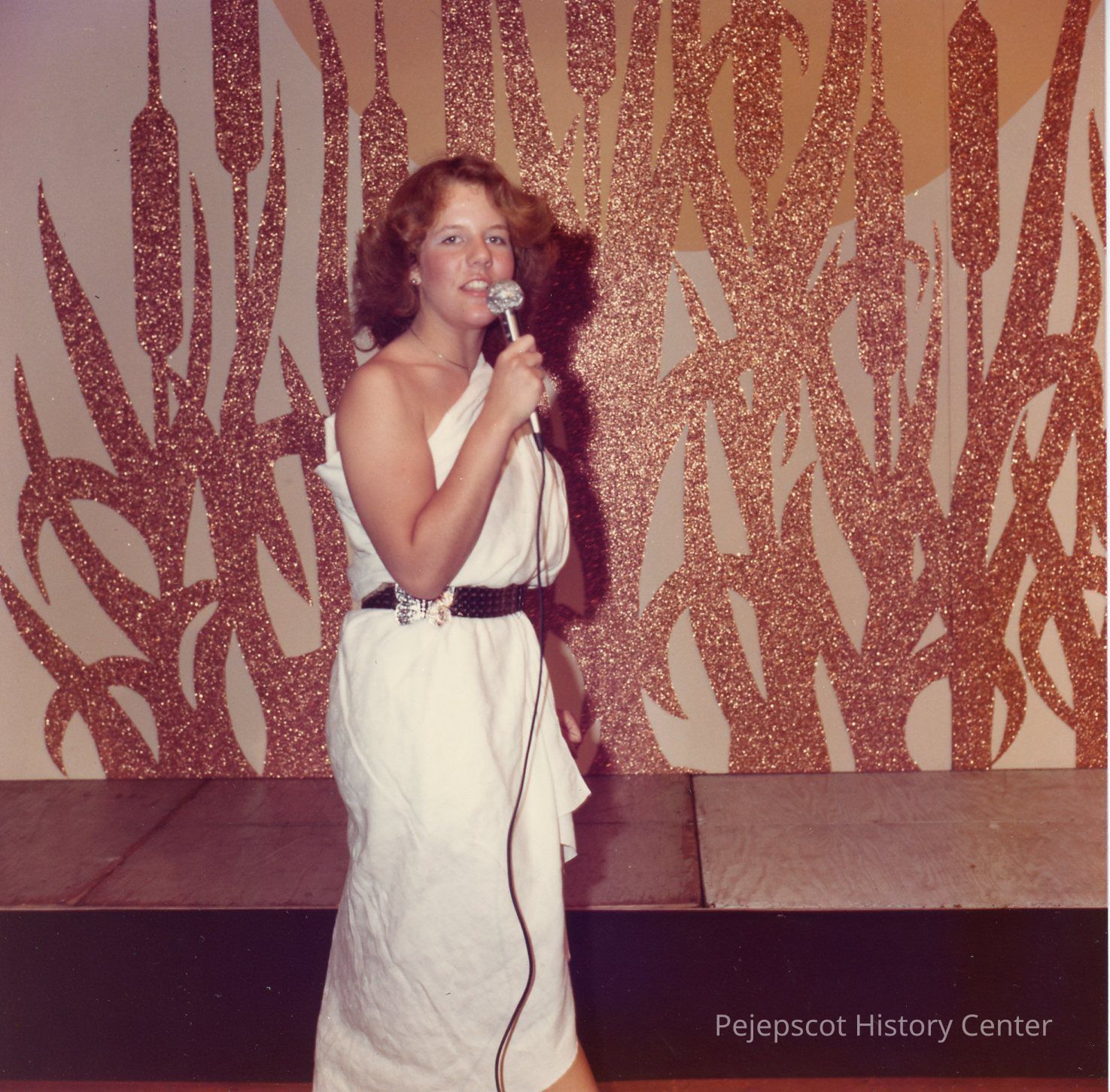 Brunswick Teen Queen Pageant, 1979. Lisa Hebert, Contestant #7, doing her recitation at dress rehearsal.