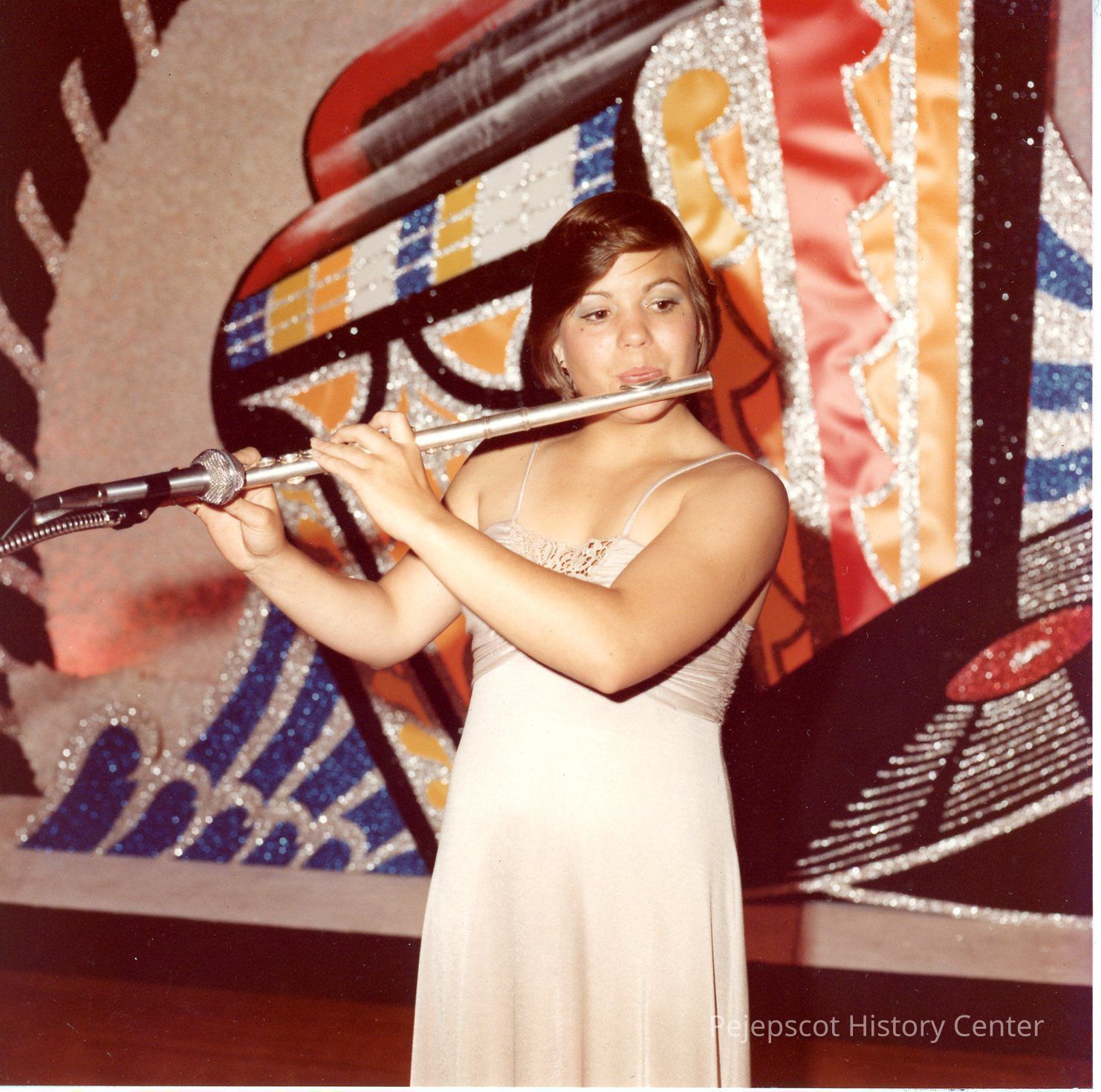 Brunswick Teen Queen Pageant, 1978. Barbara Morgan playing her flute at dress rehearsal.