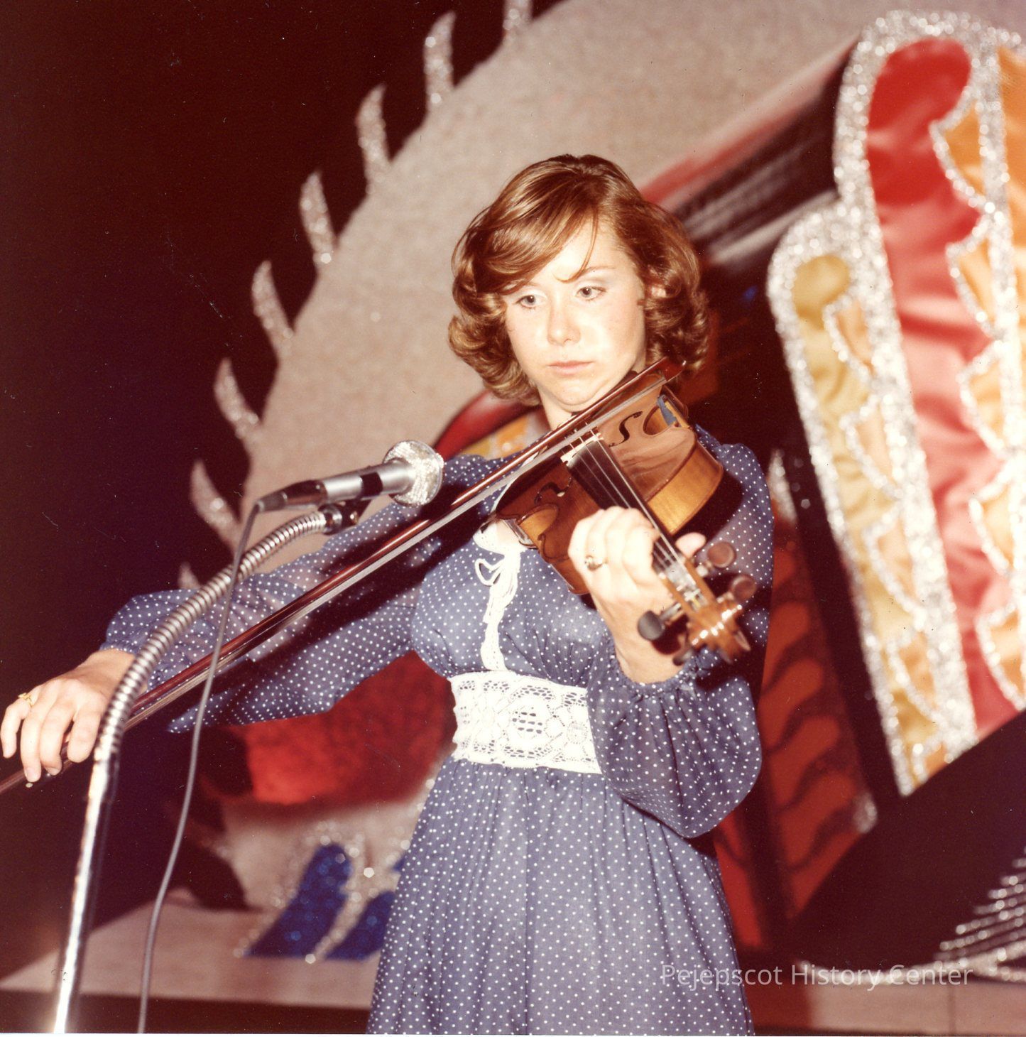 Brunswick Teen Queen Pageant, 1978. Lisa Grasmuck at dress rehearsal playing her melody on the violin.