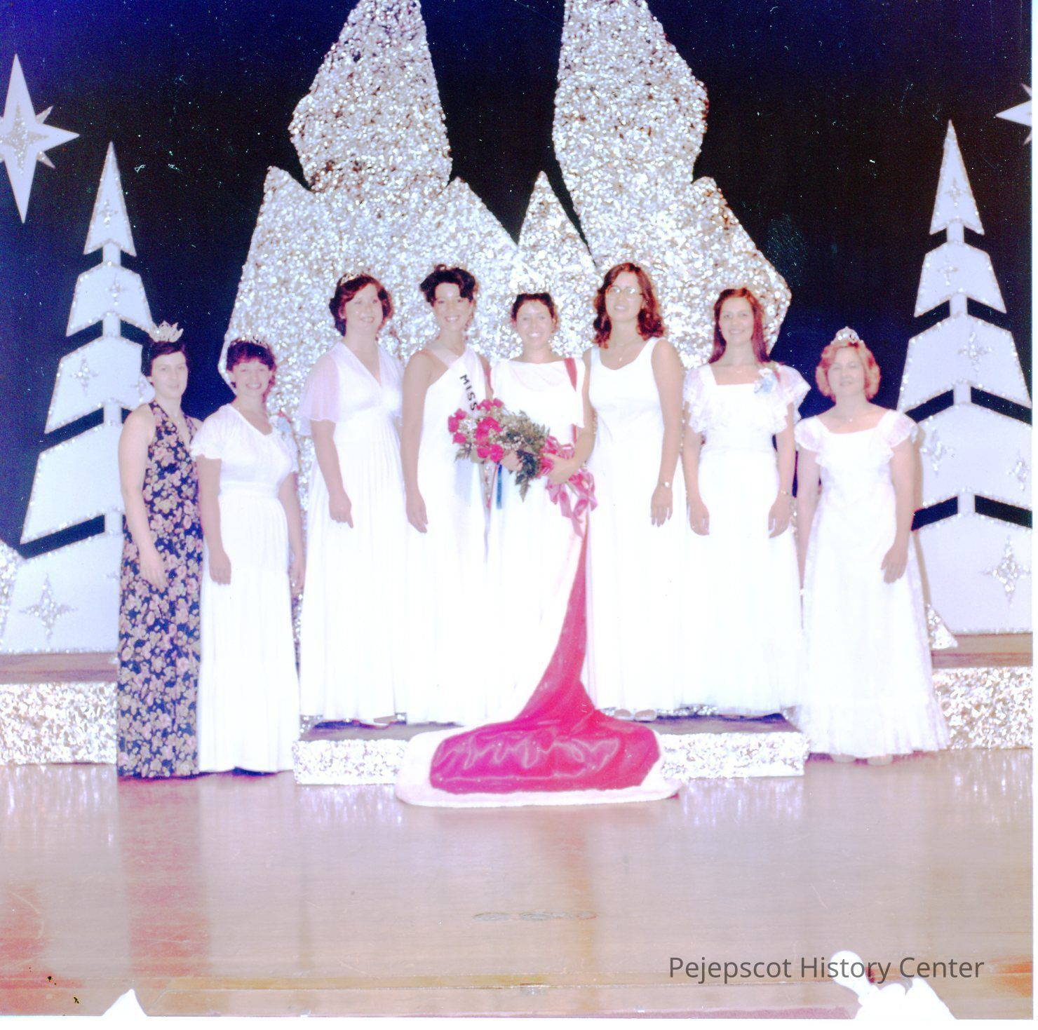 Royalty from left to right: Carol Turner Choate, Sharon Hinckley, Lisa Grasmuck, Miss Maine 1981 Valerie Crooker, Stephanie Davis, Cathy Lyden, Phyllis Gaudreau and Shannon Crane.Collection