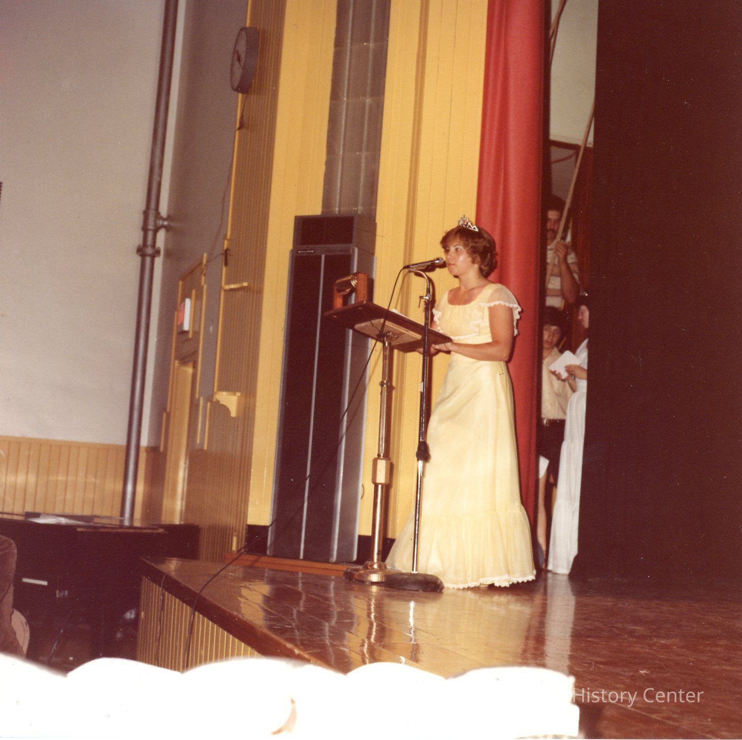 Brunswick Teen Queen Pageant, 1978. Reigning Teen Queen Shannon Crane giving her farewell speech.