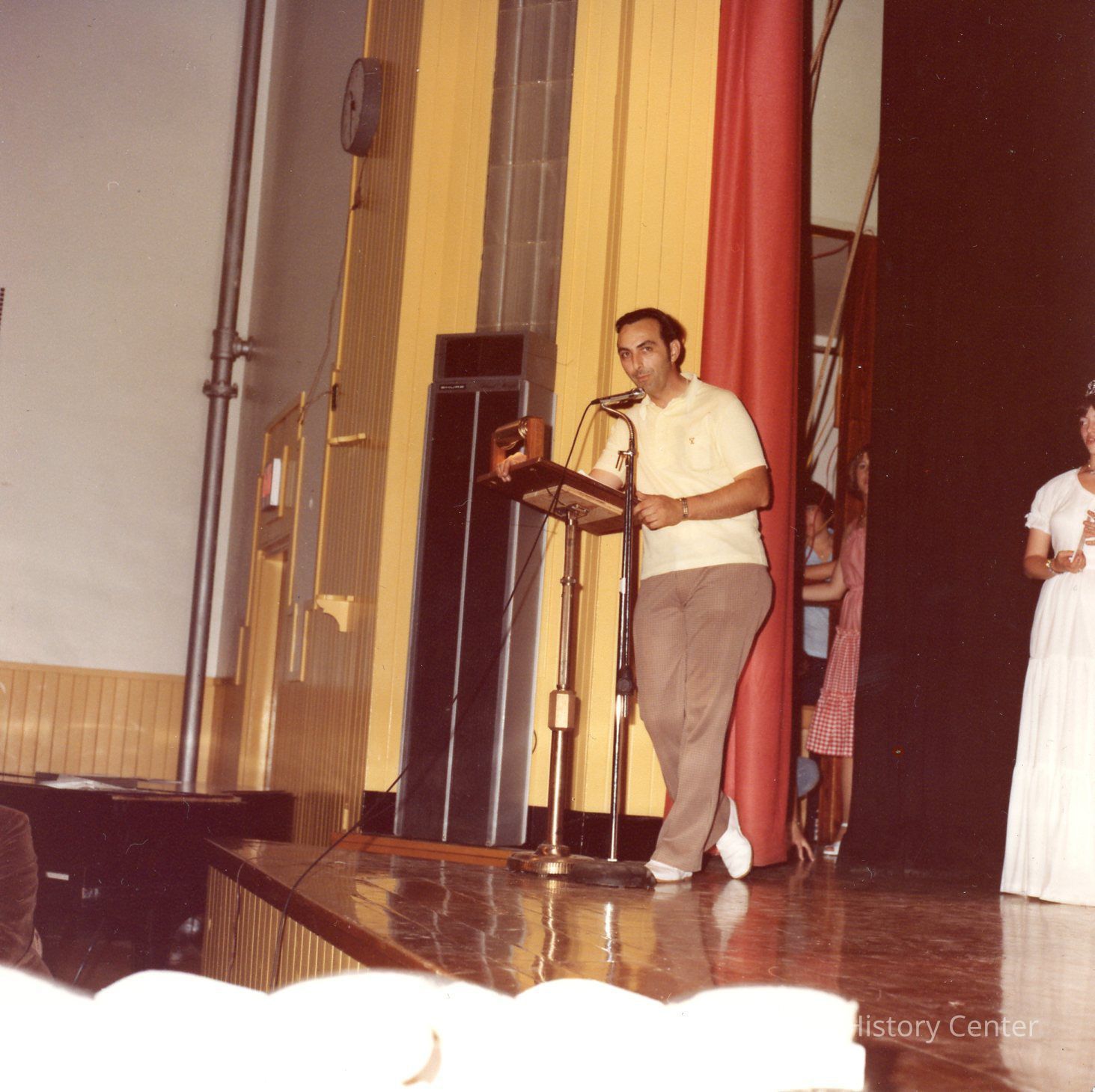 Brunswick Teen Queen Pageant, 1978. Gene Gagne thanking the persons working on pageant and announcing the Pageant Award Winner, Mr. & Mrs. Roland Laganierre.