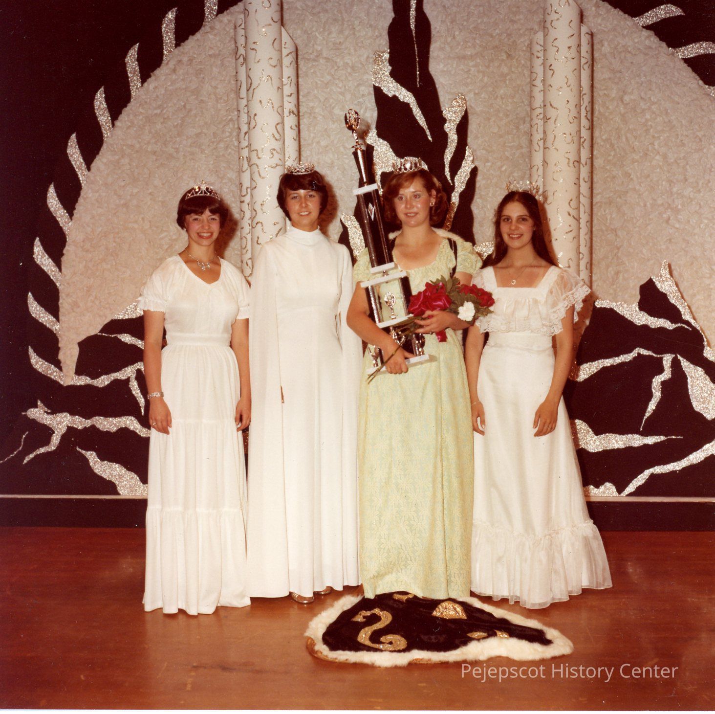 Brunswick Teen Queen Pageant, 1978. Past Teen Queens 1968 Sharon Hinckley, 1971 Doris Bernier Ouellette, 1979 Teen Queen Lisa Grasmuck and 1972 Phyllis Gaudreau.Collection