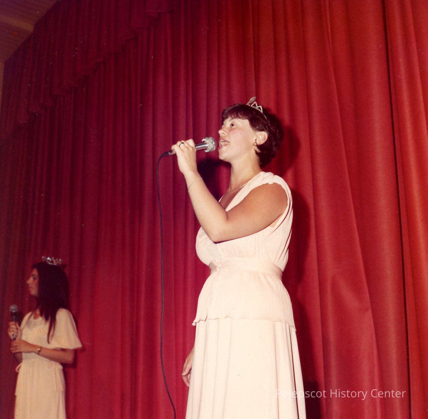 Brunswick Teen Queen Pageant, 1979. Sharon Hinckley singing "Paper Moon." Phyllis Gaudreau is in the background.