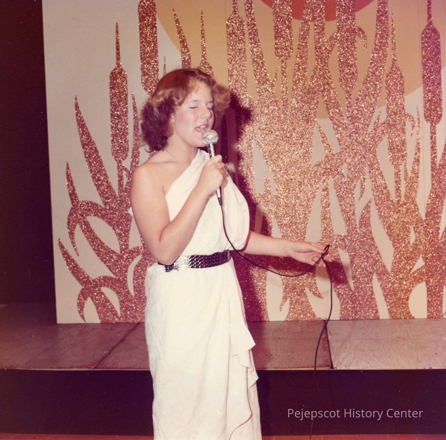 Brunswick Teen Pageant, 1979. Lisa Hebert, Contestant #7, doing her recitation at dress rehearsal.