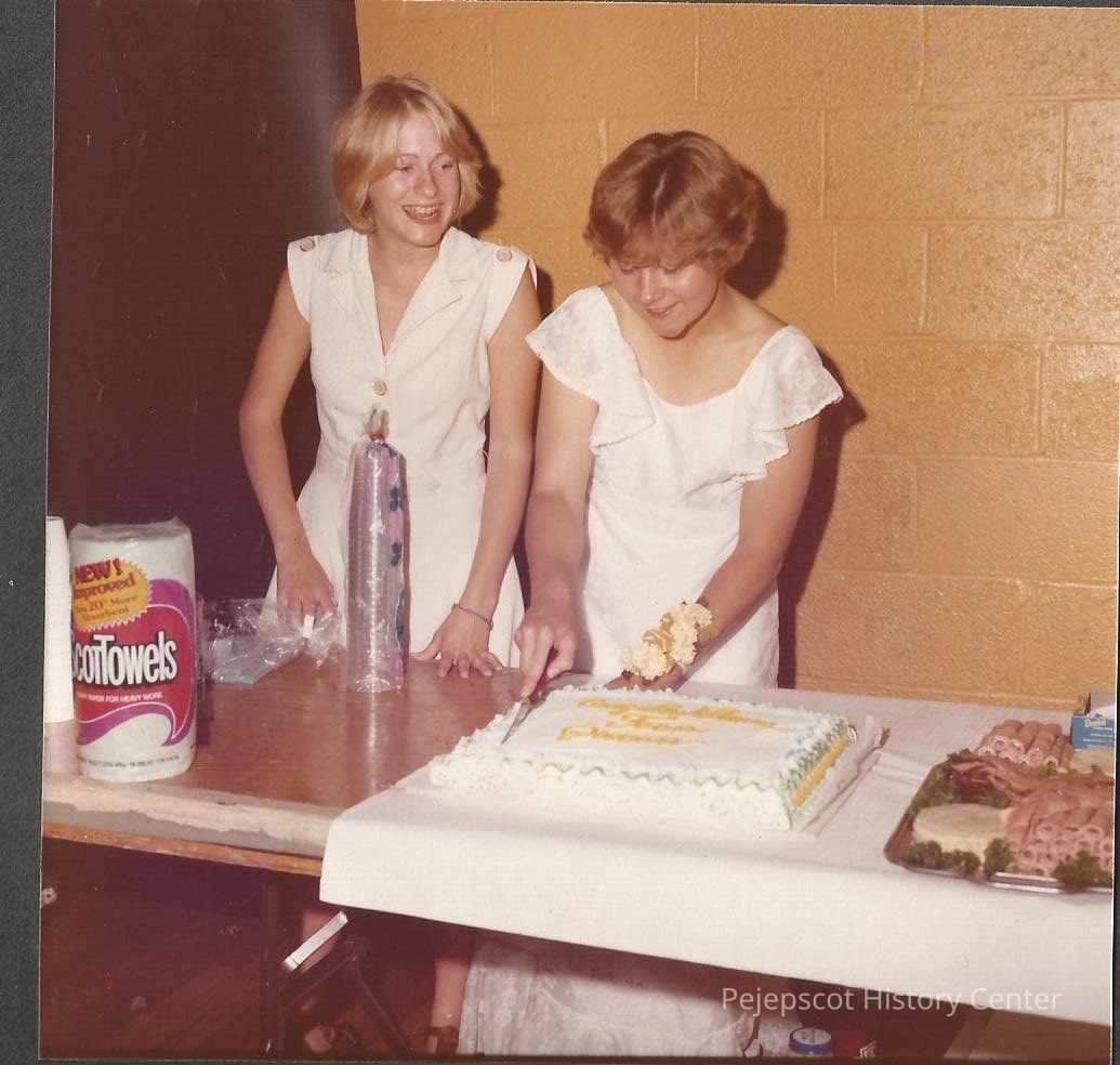 Teen Queen Shannon Crane cutting the cake for the lunch at the pageant dance. Looking on is Ava Linkel.Collection