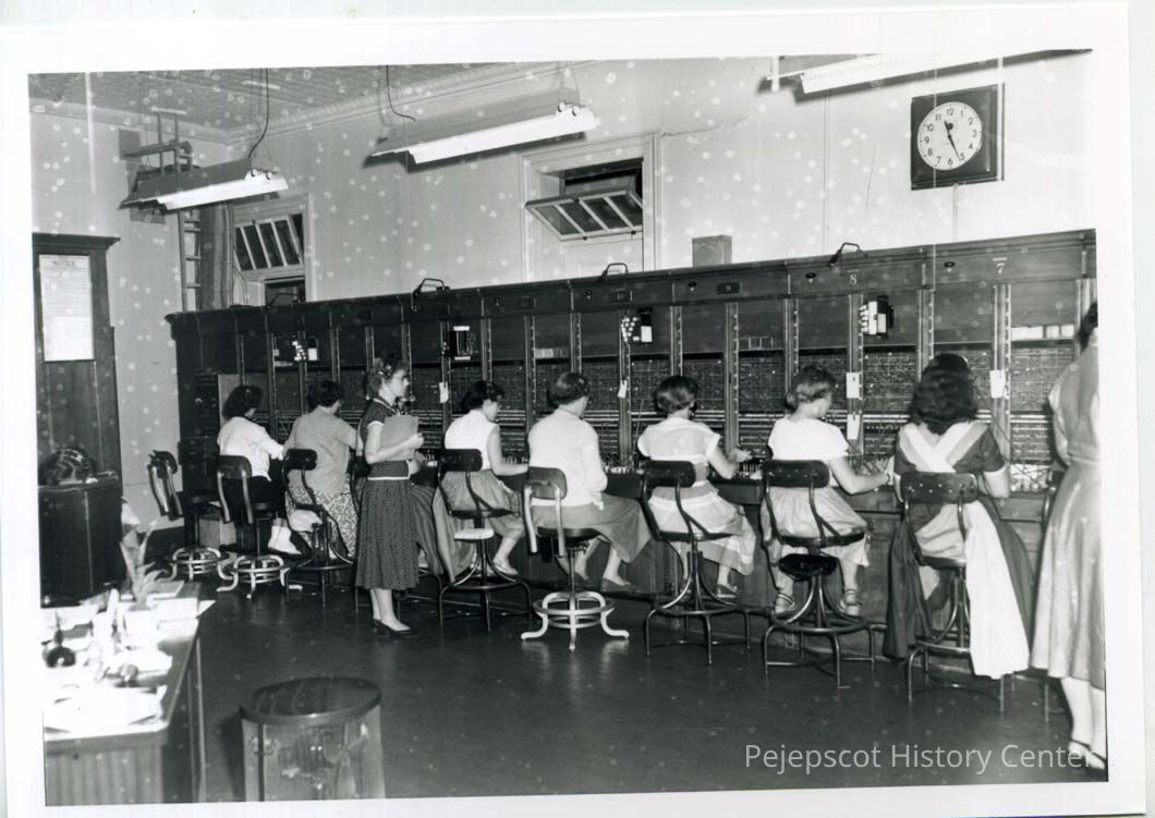 New England Telephone and Telegraph's Brunswick exchange in the basement of the Town Hall, Maine Street, prior to 1955.
