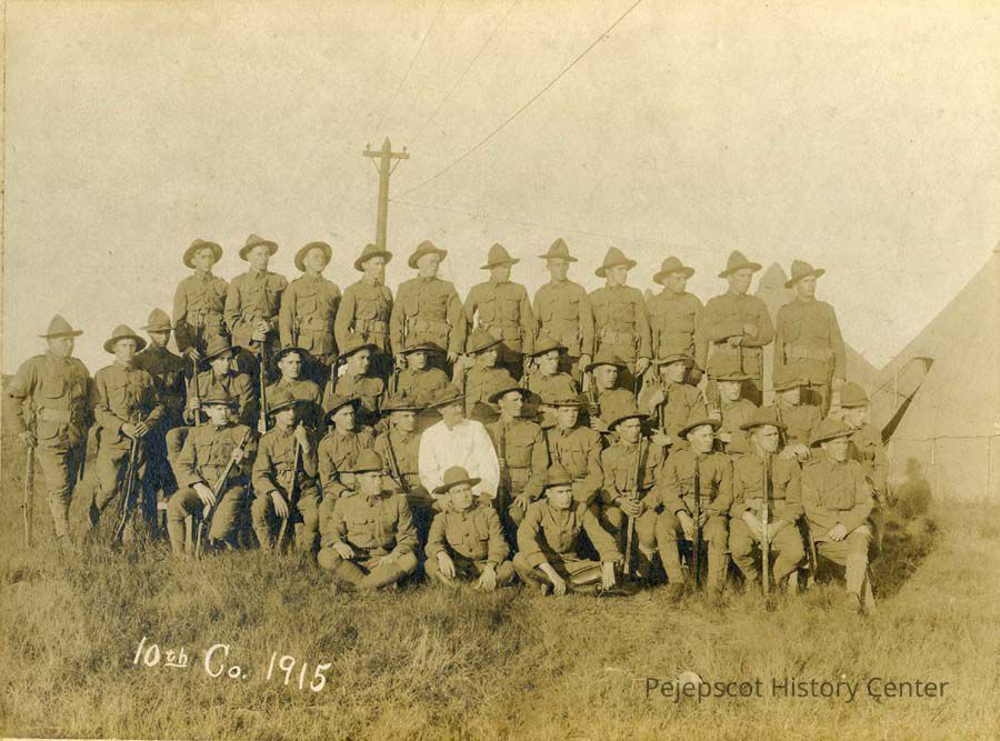 A sepia-toned photo of the 10th Company, from the First World War. Dated 1915.