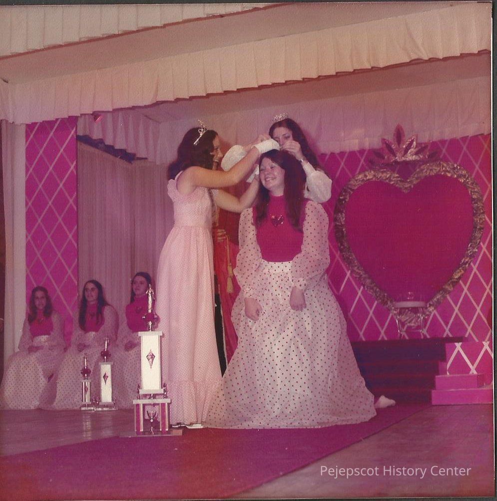 The 1974-74 Brunswick Teen Queen Debra Jellison being crowned by Maine's Jr. Miss Pauline Cloutier and Barbara Aldridge 1973-74 Brunswick Teen QueenCollection