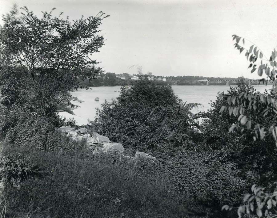 A B/W photo of the Androscoggin River from the Topsham shore. 1993.22.71 Album. Undated