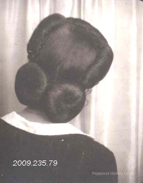 A B/W photograph of the back of Leona Gordon's head showing off her hair do.