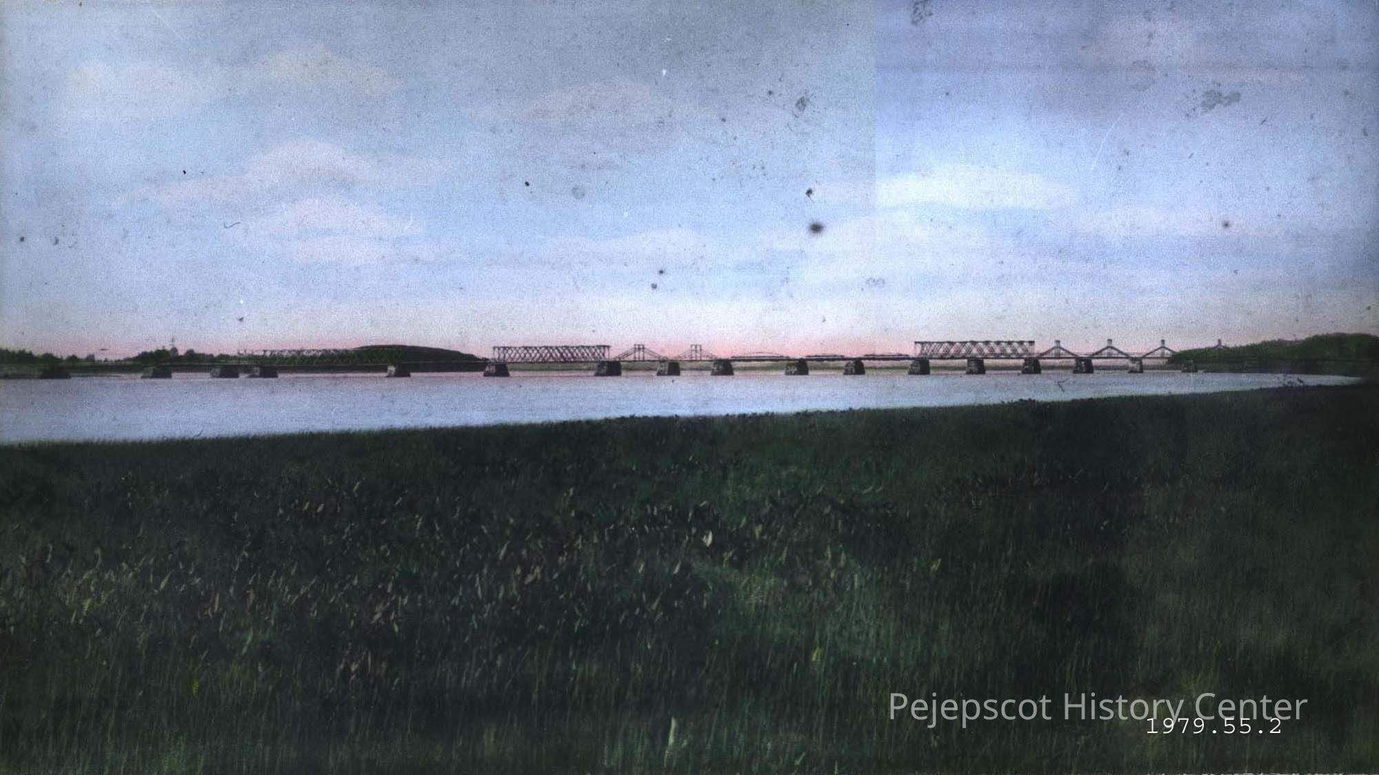 A colorized photograph of Bay Bridge over Merrymeeting Bay, Brunswick, ME.