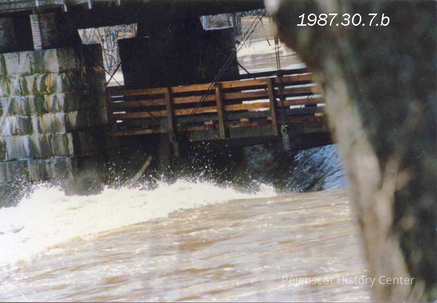 A color photograph of the Back Bridge as seen from the Topsham, Maine side. April 2, 1987.