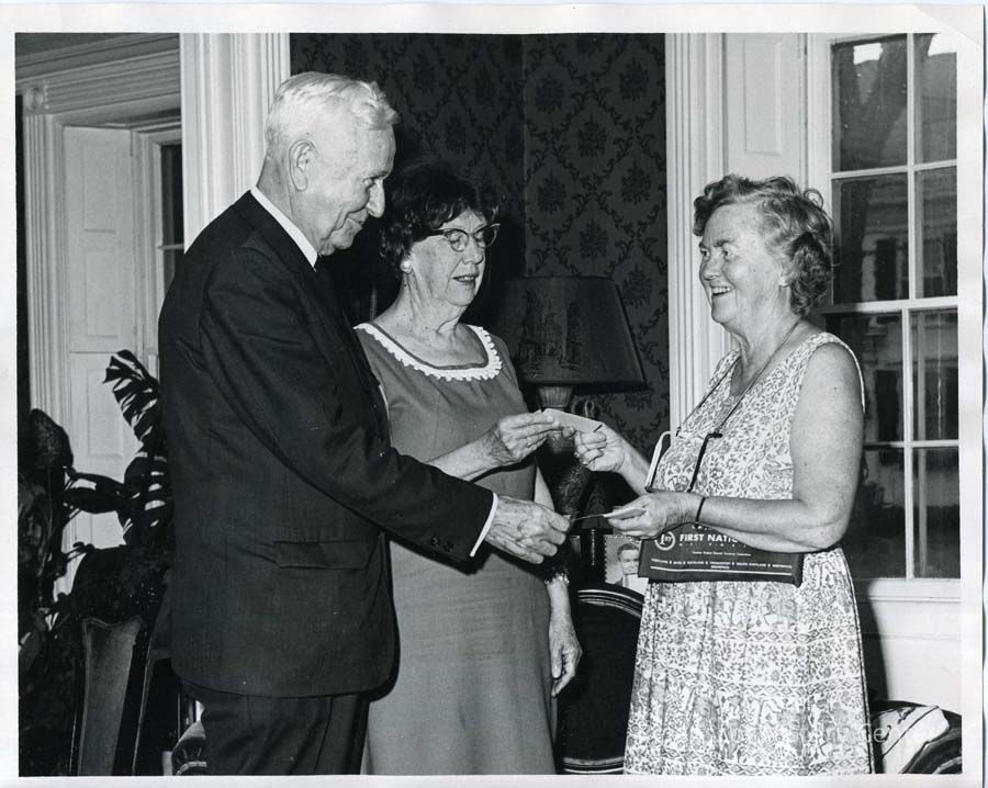 Black and white photo of Emery and Marion Booker with Mary Baxter White ( from left to right)