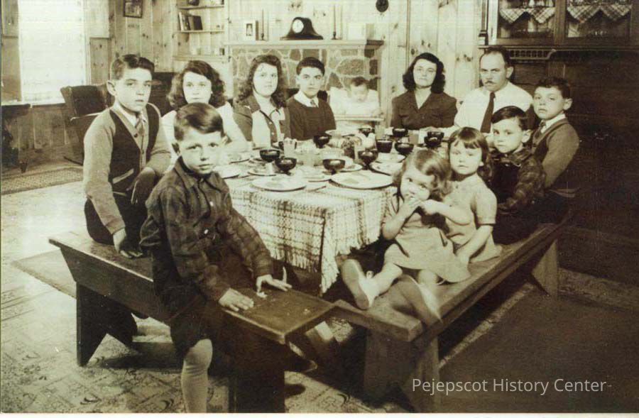The Bouchard family at dinner. Thanksgiving 1941. The names are listed on the back, but no indication as to where they are on the front.