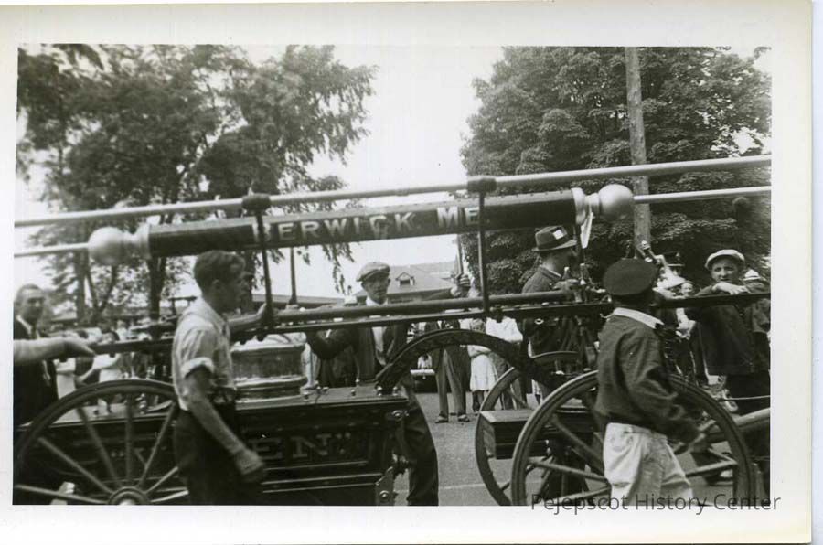 A B/W photograph of Brunswick Bicentennial parade. Pictured is a Berwick, ME fire engine. Dated 1939.