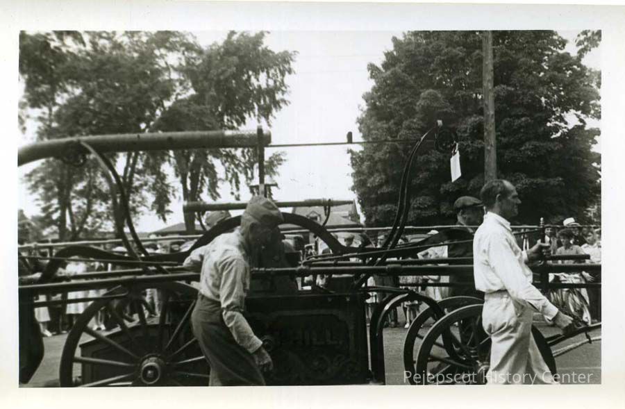 A B/W photograph of the Brunswick Bicentennial parade, featuring a fire engine. Dated 1939.
