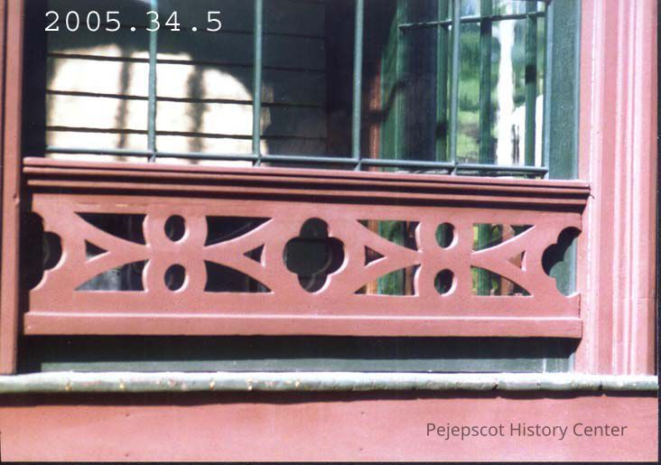 A color photograph the first floor piazza of the Chamberlain House. The photo is taken of the Potter Street side of the house.