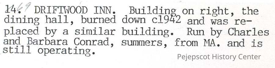 A B/W print copy of the Driftwood Inn, Bailey Island. See back of photo for more info. UndatedCollection