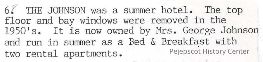 A B/W print copy of The Johnson. The Johnson was a summer Hotel. See back of photo for more info. UndatedCollection