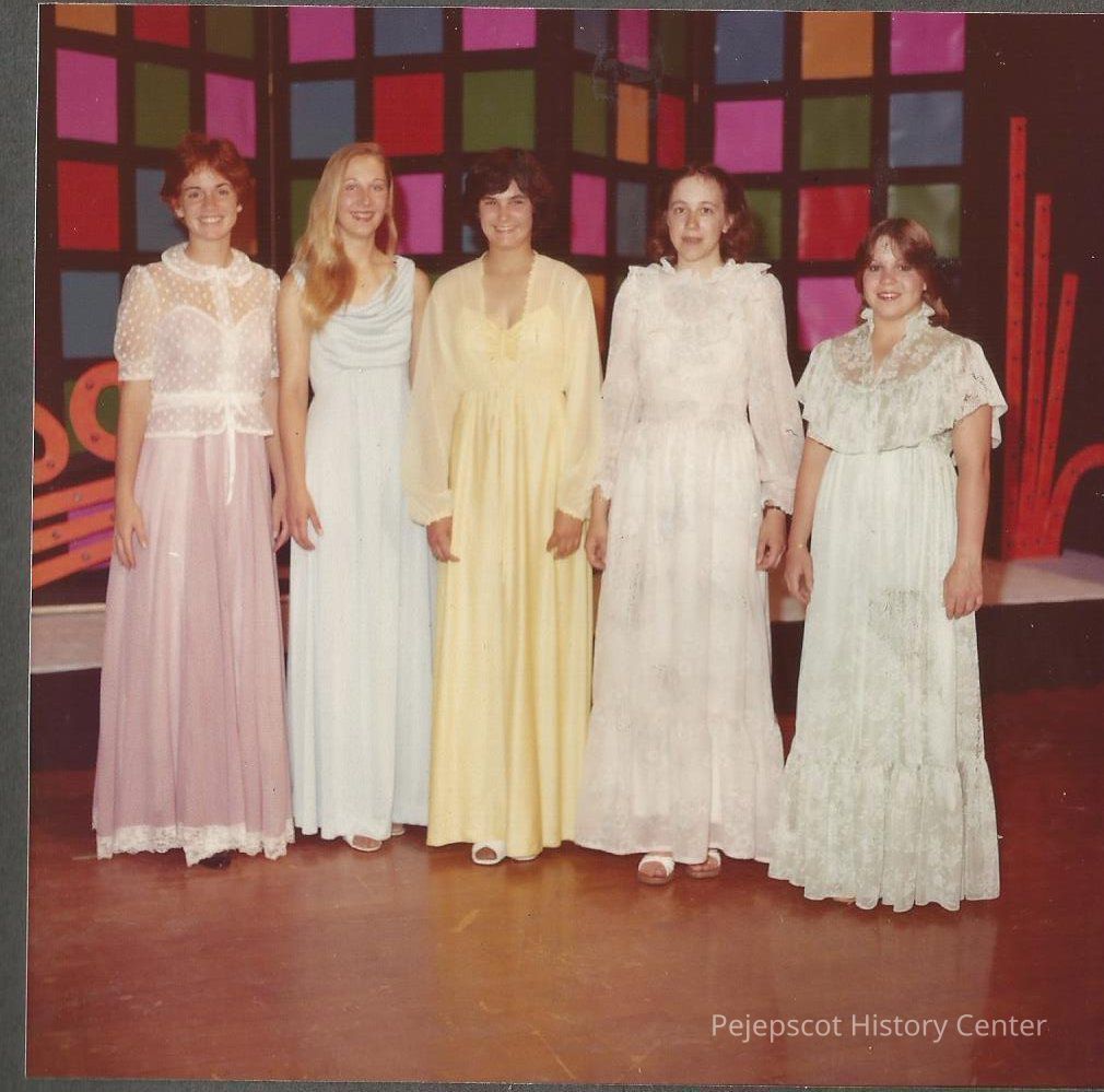 The last 5 contestants in evening gown are L. to R. Kathy Jarrell, Stacy Pettigrew, Paulette Racine, Heidi Heintz and Barbara Morgan.Collection