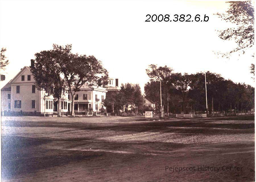 A B/W photograph of the Lower end of Mall. It shows Park Row and the PHS office in the background. The sign in the street says, "Howes Scales." Undated