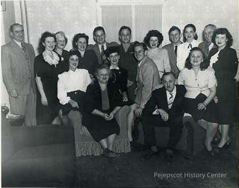 A B/W photograph of the Myer and Sadie Davis family. Included in the group are their children and Sadie's brother and sister. Their names are on the back of the photo. Undated