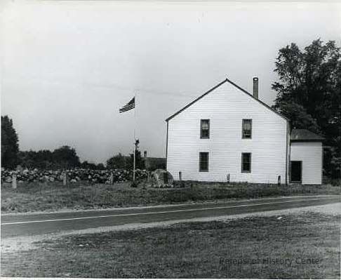 A B/W photograph of the Old Meeting House at Harpswell Center. Undated