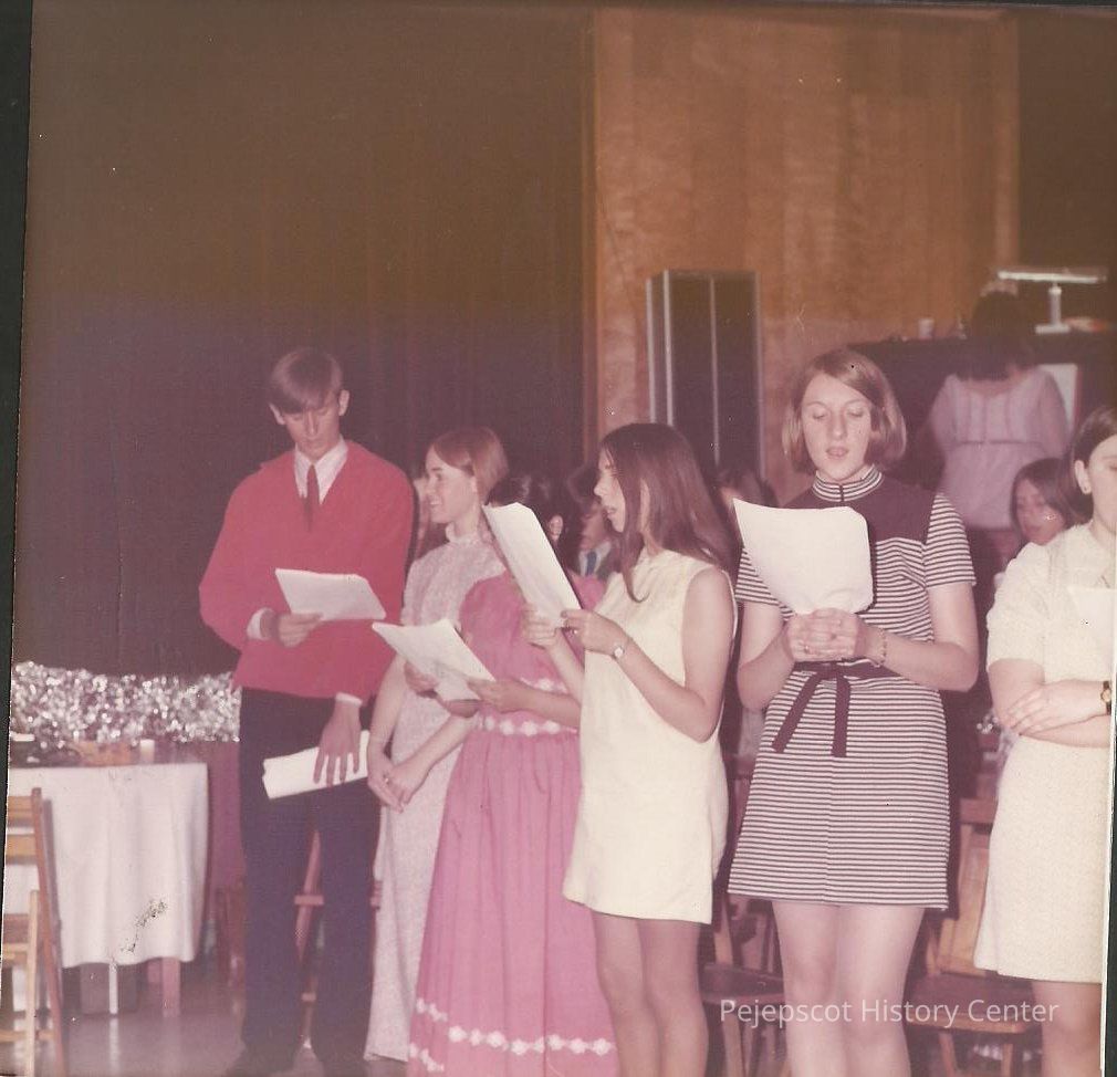 The pageant singers are singing "A Time For Us" while the contestant are doing there quater turns. Singers L. to R. Richard Townsend, Brenda Gagnon, Linda LeTarte and Margot Cantin.Collection