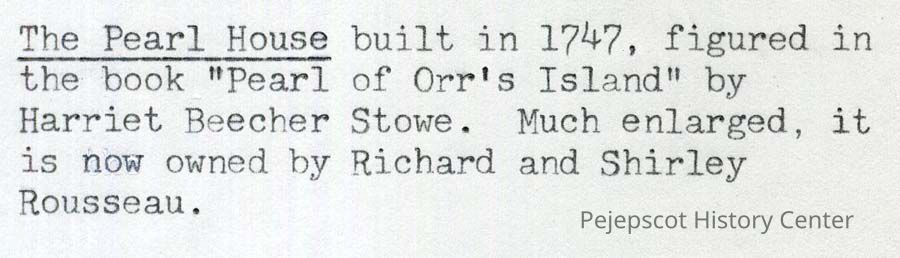 A color print copy of the Pearl House, built in1747. See back of photo for more info. Undated