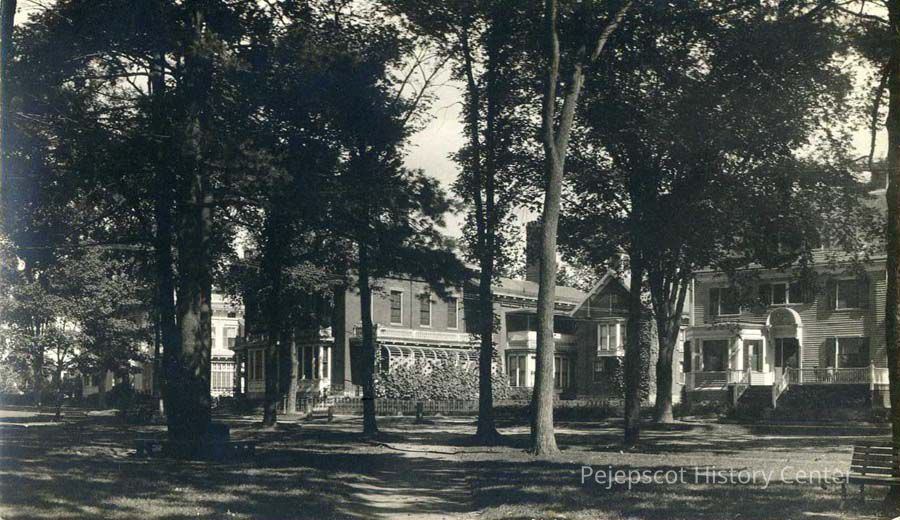 A B/W photograph view of the Skolfield-Whittier House, Brunswick, ME. The photo of Dr. Whittier's home was taken from the Brunswick Mall.