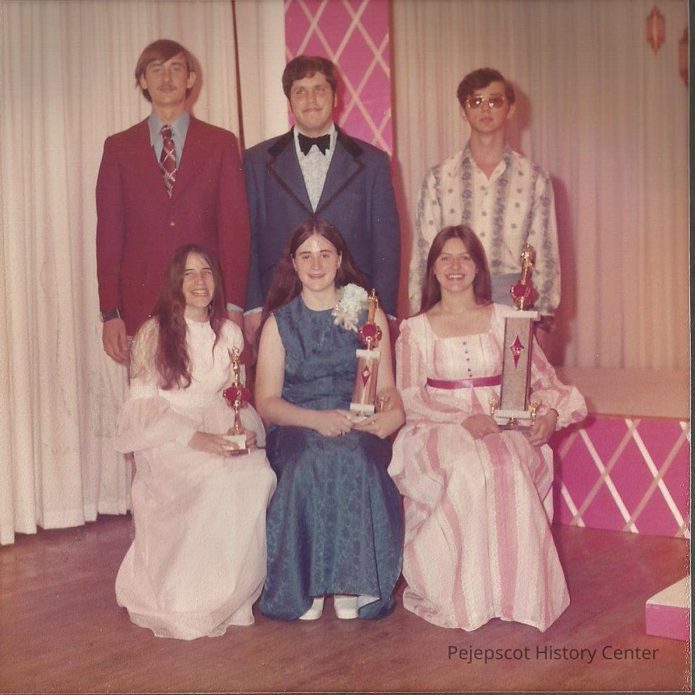 The Teen Queen Contestants and there escort at the ball. Sitting T. Gustafson, J. Thiboutot and L. Hinckley. Standing R. Townsend, L. Theberge and G. Bouchard.Collection