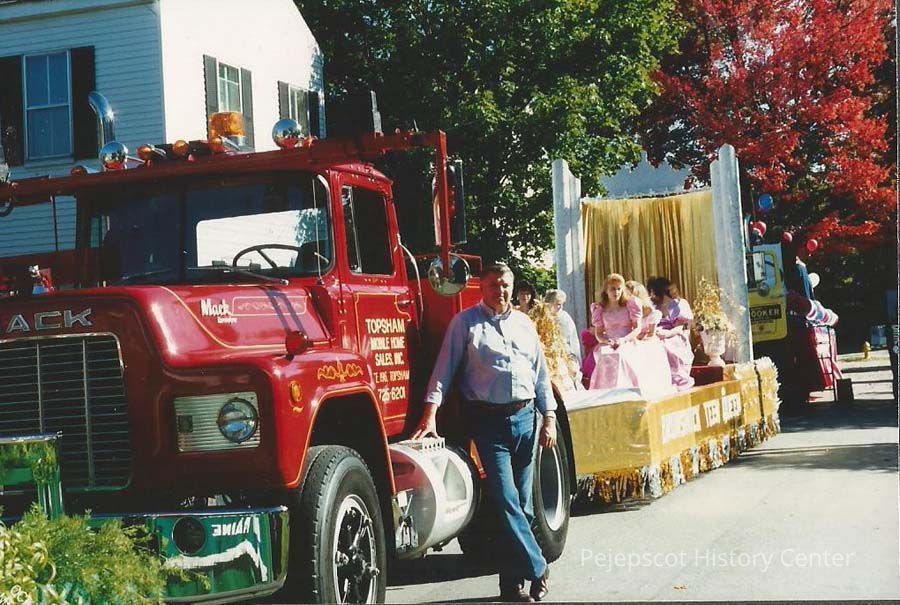 A color photograph of the driver and his truck who hauled the Teen Queen float.Lexicon