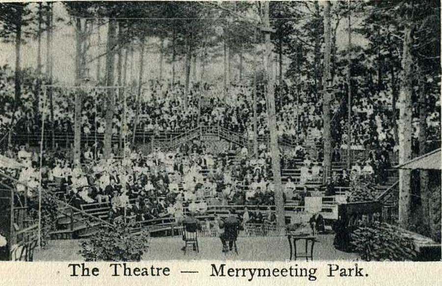 A black and white photograph of the theatre at Merrymeeting Park in Brunswick, ME. Undated.