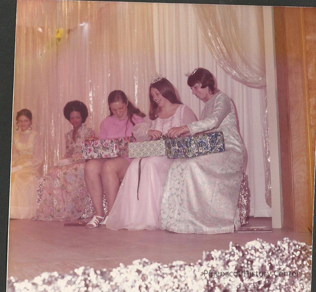 Photographer's # 7-5 The three girls are sitting as ordered by Gene (Gagne) and presents are given to them