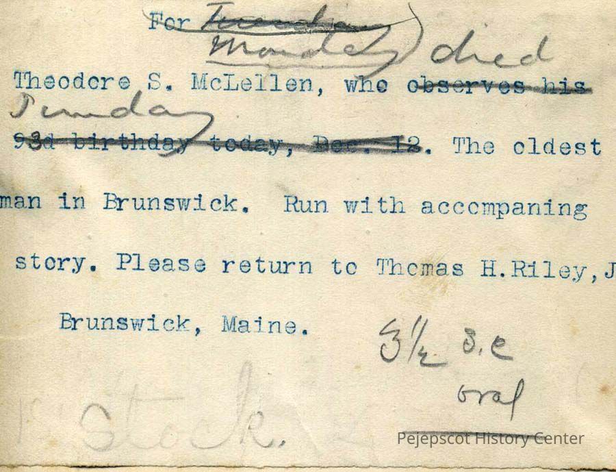 A B/W photograph of Theodore S. McLellan. Not dated.