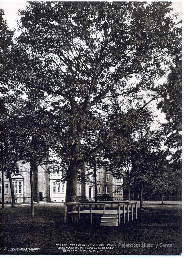 B/W postcard of the Thorndike Oak, Bowdoin College, Brunswick, Me.
