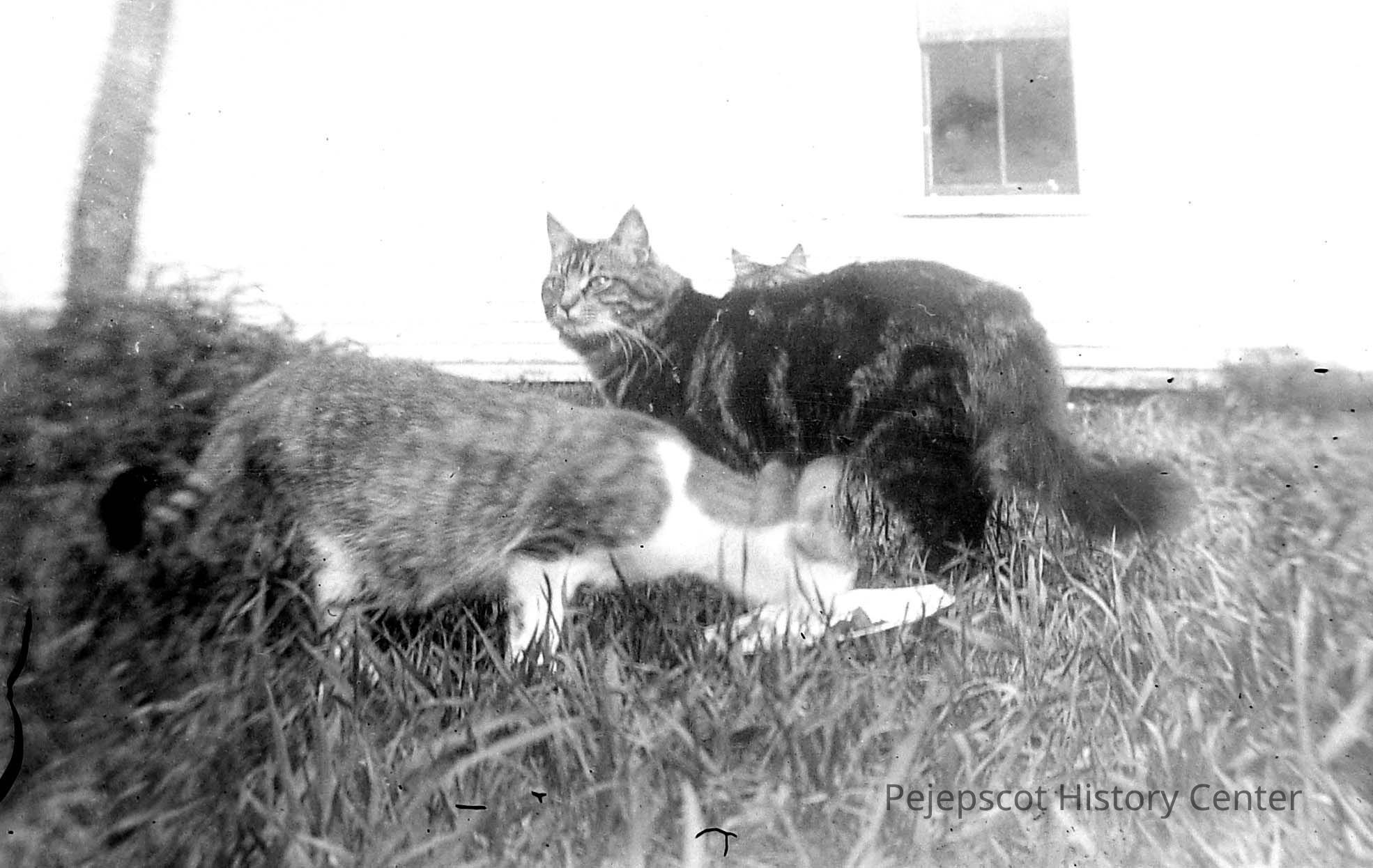 A glass plate negative #38 and with a photograph of three cats playing outside. "CD-R "Glass Negative Photos" #38 Undated.