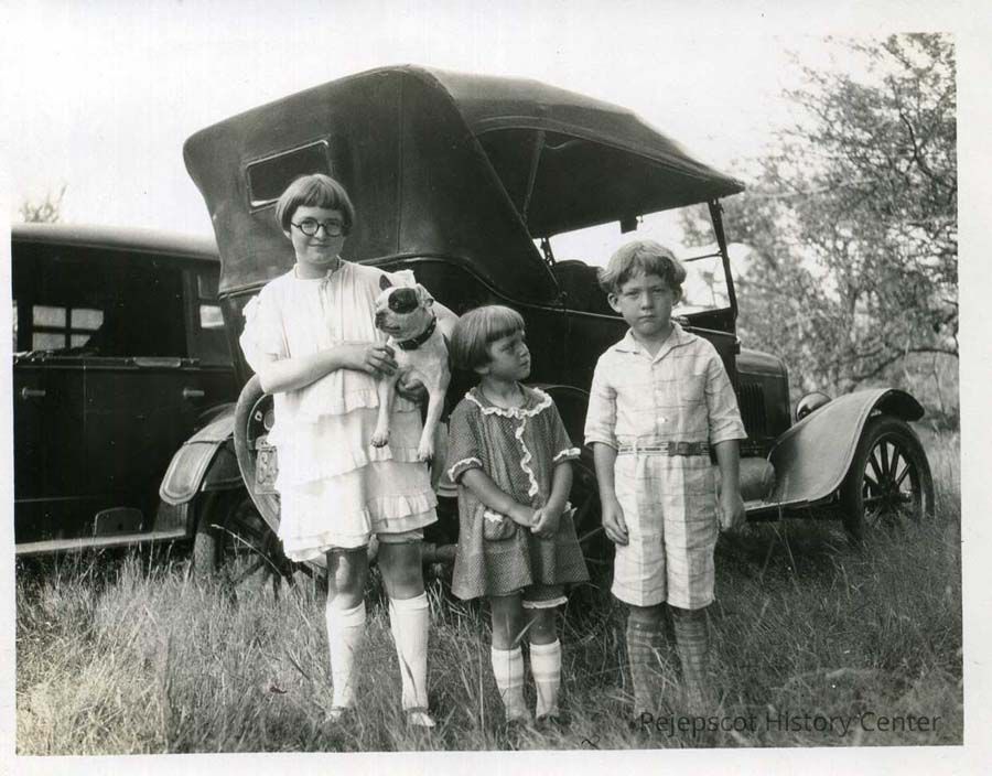 B/W photo of three children, 1926 or 1927.