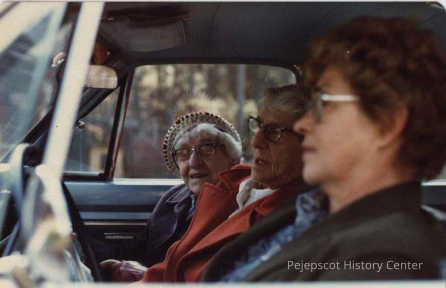 A color photograph of three ladies in a car. Marked on the back 11/1981.